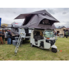 Carpa de techo con capacidad para 3-4 personas. Para ser instalada en jeeps, camionetas, campers, 4×4 y en todo tipo de vehículo que cuente con barras porta equipaje, armado en sólo 3 minutos, resistente a la lluvia y al viento.